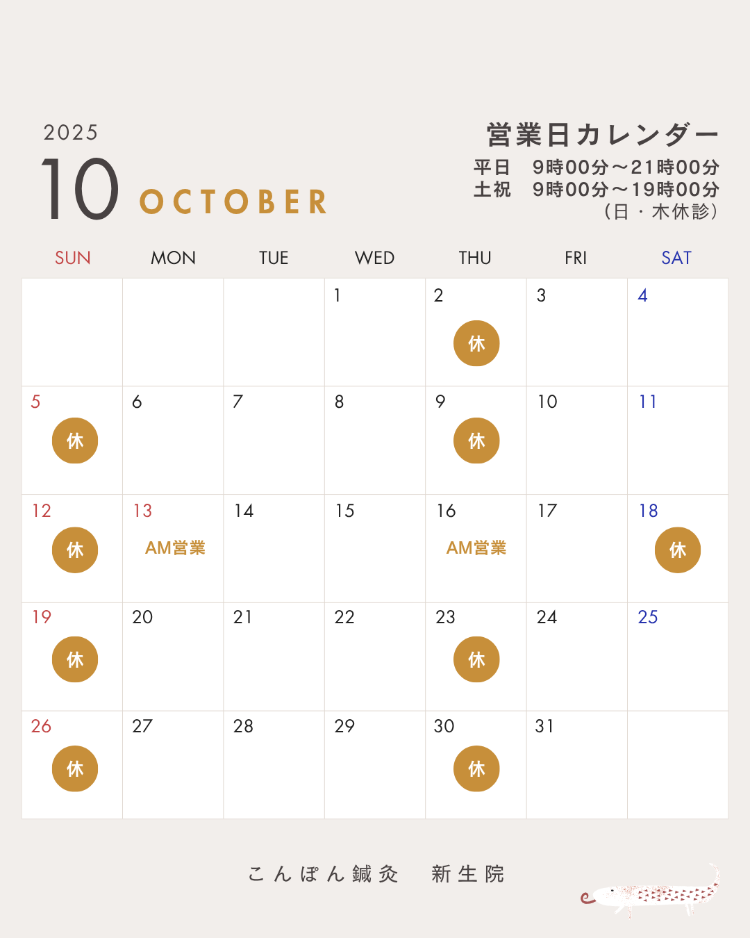 本日は10月の休診日についてのお知らせをさせていただきます。